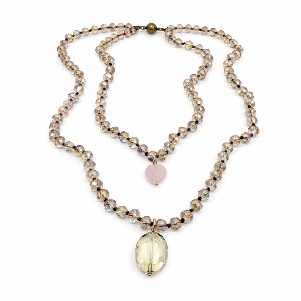 Warm Beige Crystal Necklace Product Details: