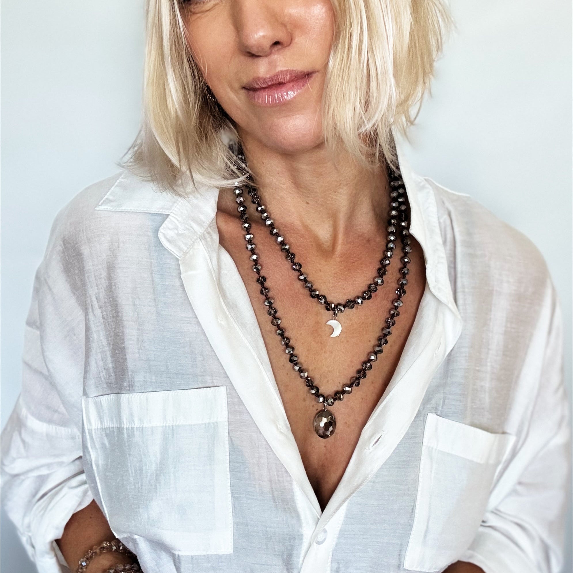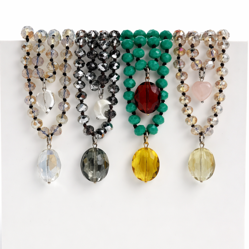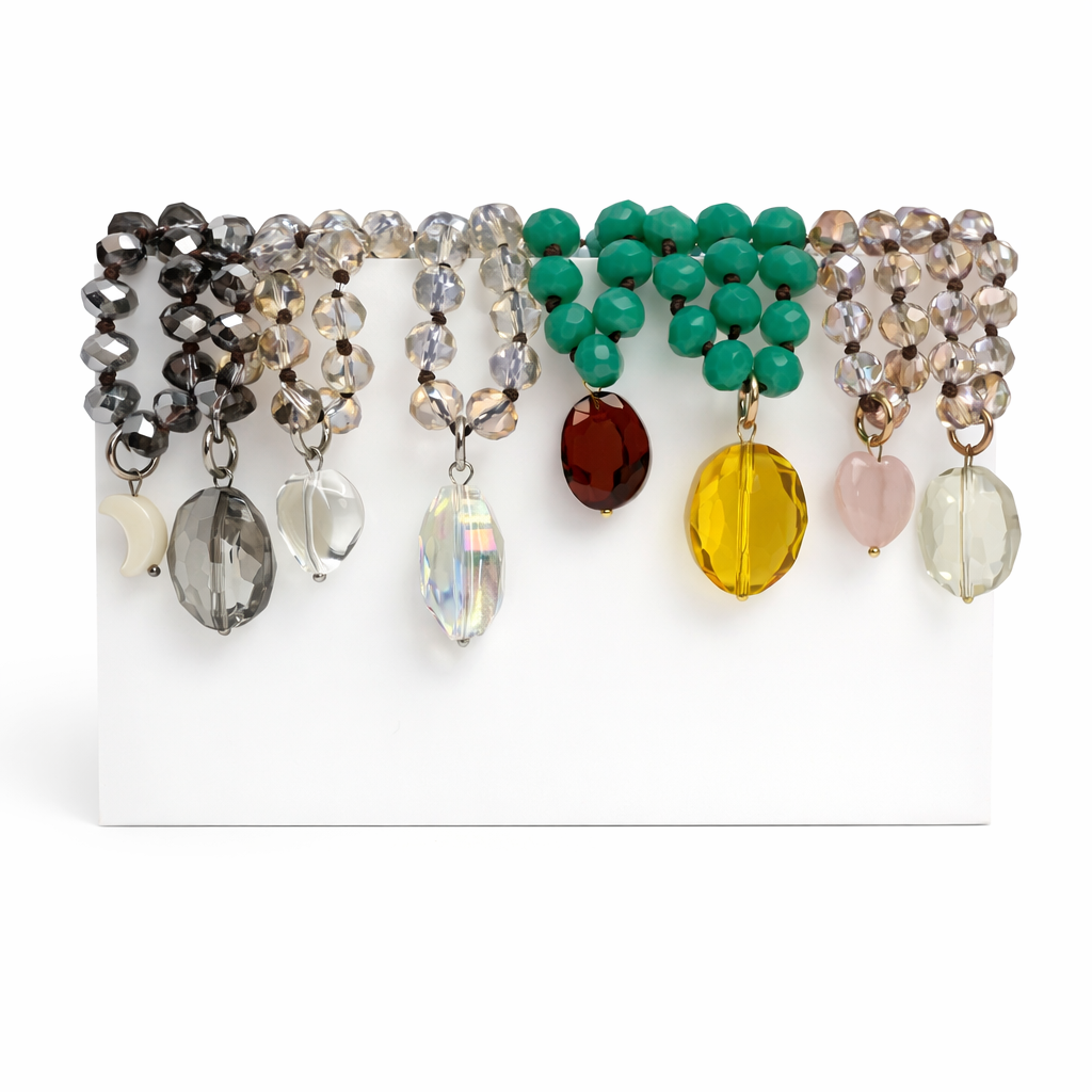 Katia loves to embrace all of the imperfections that occur when working with organic materials. Due to the crystals and crystal beads being an organic material, shape, clarity, and color vary and may have pits, cracks, and other marks that Mother Nature provided to add interest and beauty.