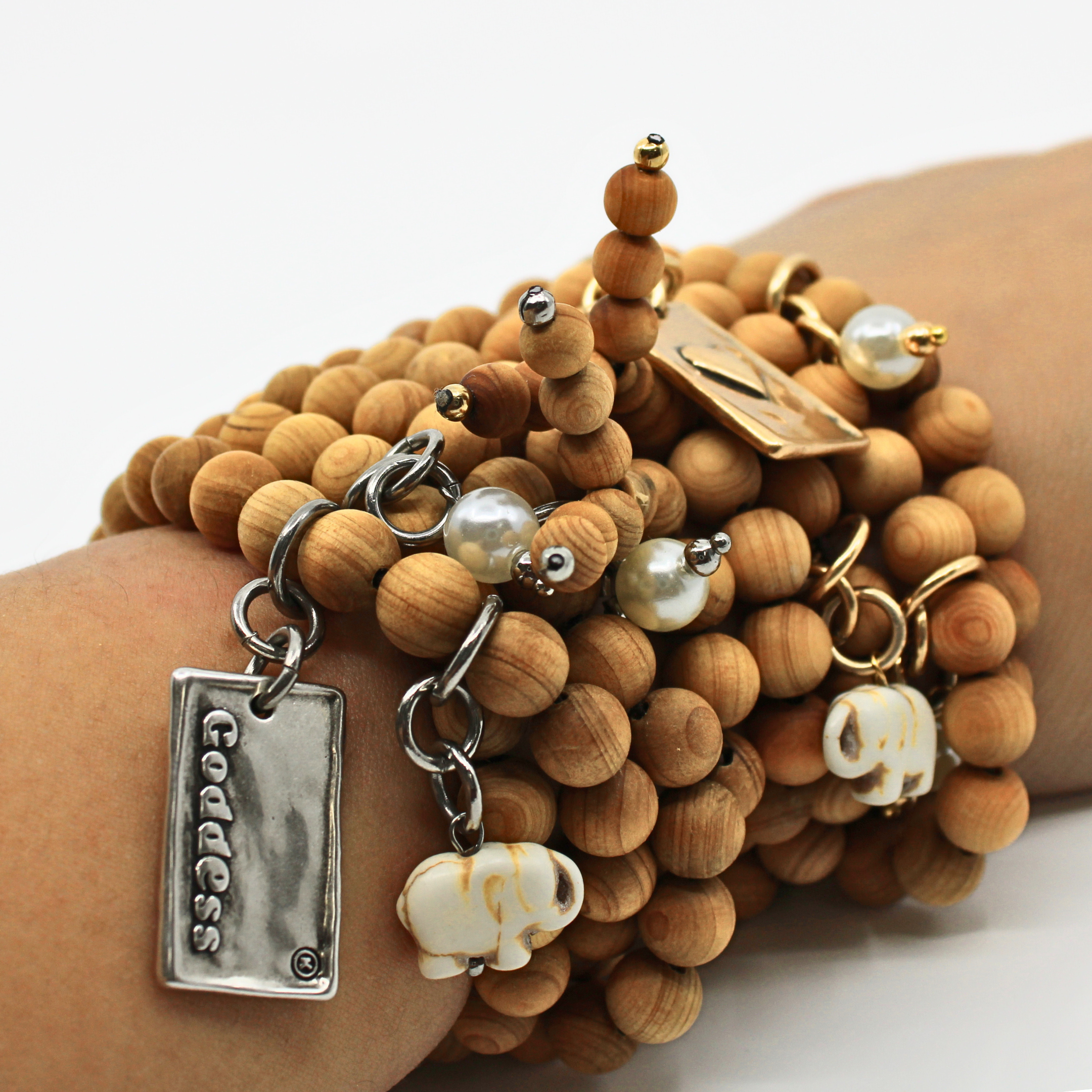 - Paired with a white Howlite elephant and 2 pearl accent stones