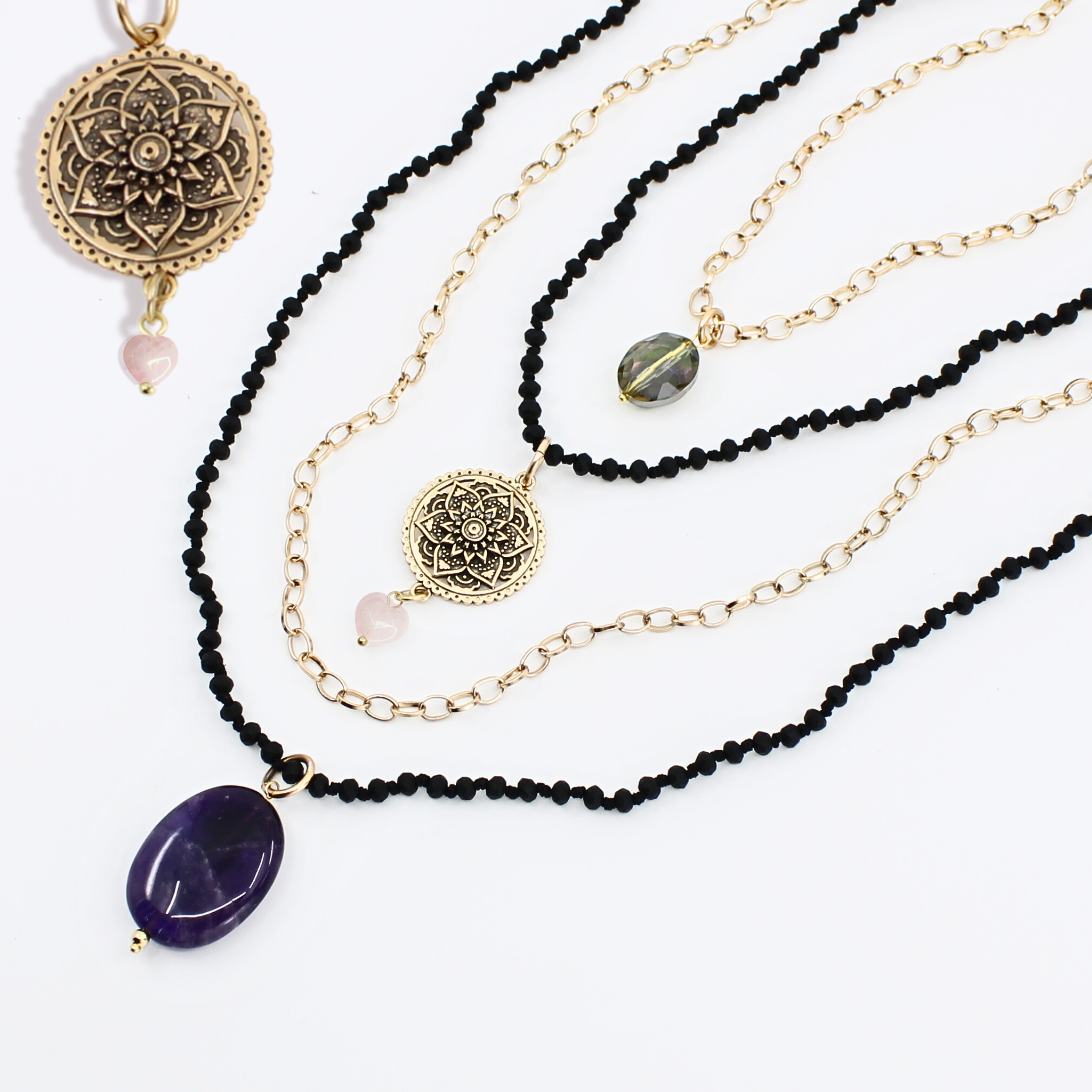 Grateful Thankful Blessed Mandala Original Necklace Layering Bundle