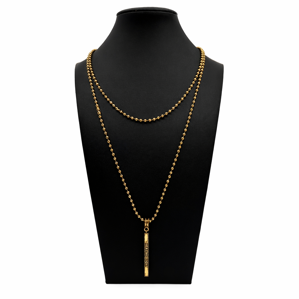 This necklace features a 3mm ball chain paired with an intricate vertical four-sided bar pendant, each side inscribed with a reminder for every stage of your healing journey. The chain adds subtle texture while keeping the design lightweight and versatile. Perfect for layering or wearing solo as a daily reminder of positivity and strength.
