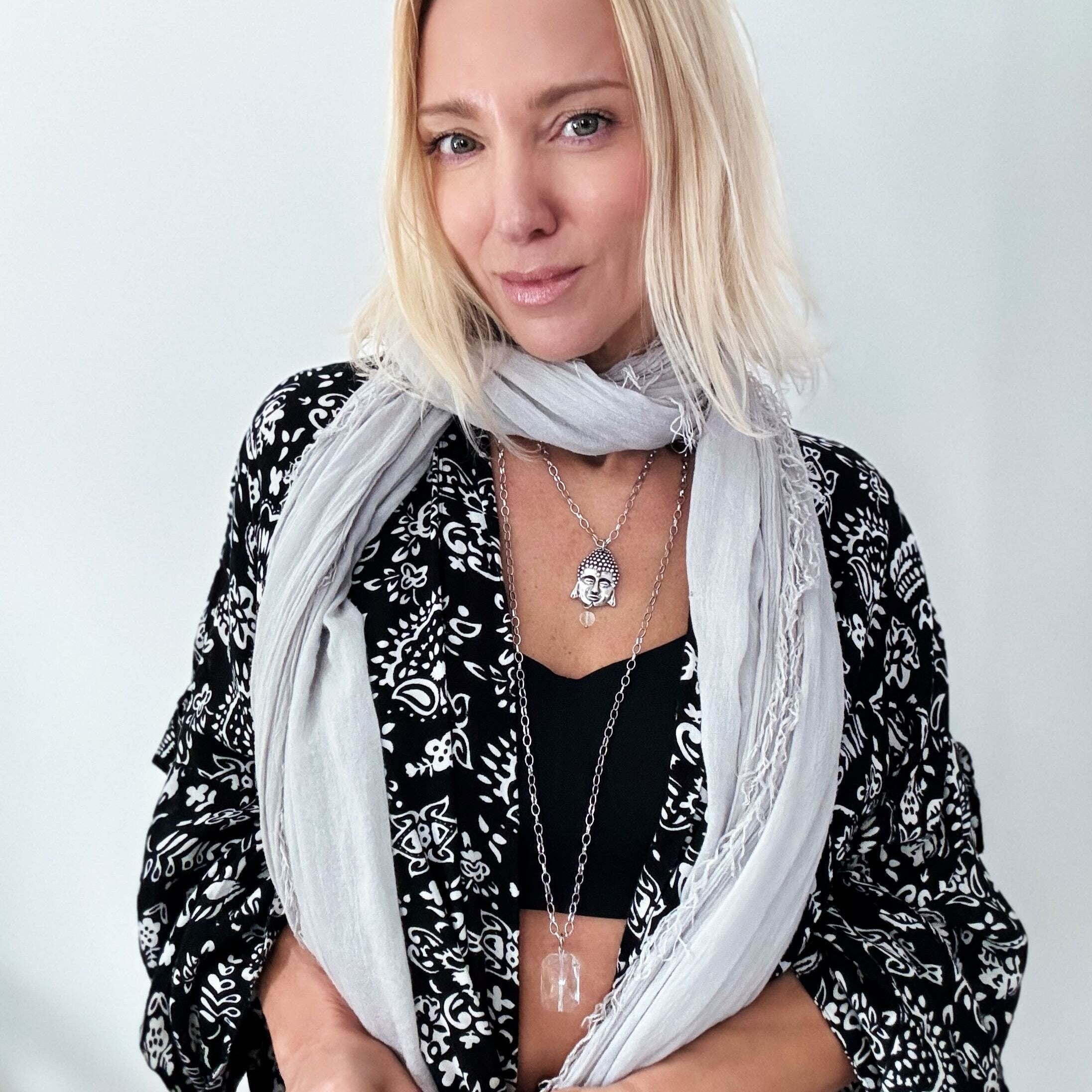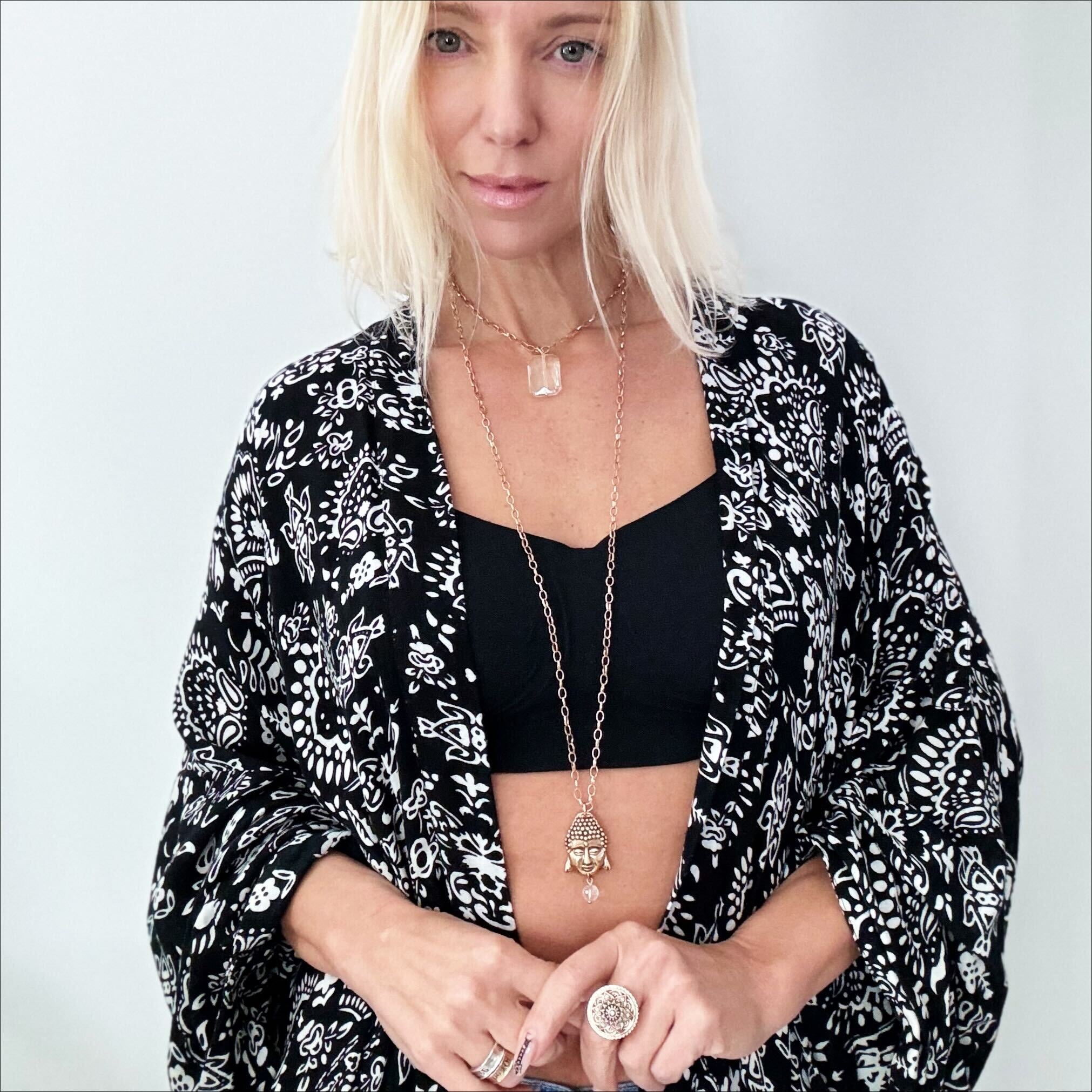 Original Necklace Full Length: 44-50" **MODELS NECK MEASURES 15" IN CIRCUMFERENCE. PLEASE NOTE THAT NECKLACES MAY LAY DIFFERENTLY BASED ON YOUR MEASUREMENTS**