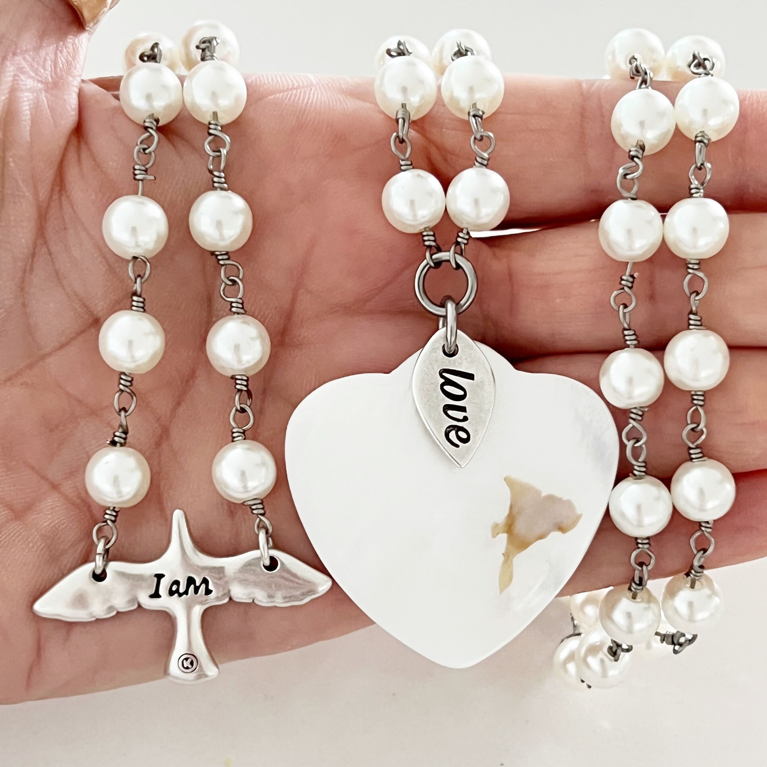 - Large pearl heart and love tag