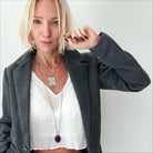Original Lite: 48" **MODELS NECK MEASURES 15" IN CIRCUMFERENCE. PLEASE NOTE THAT NECKLACES MAY LAY DIFFERENTLY BASED ON YOUR MEASUREMENTS**
