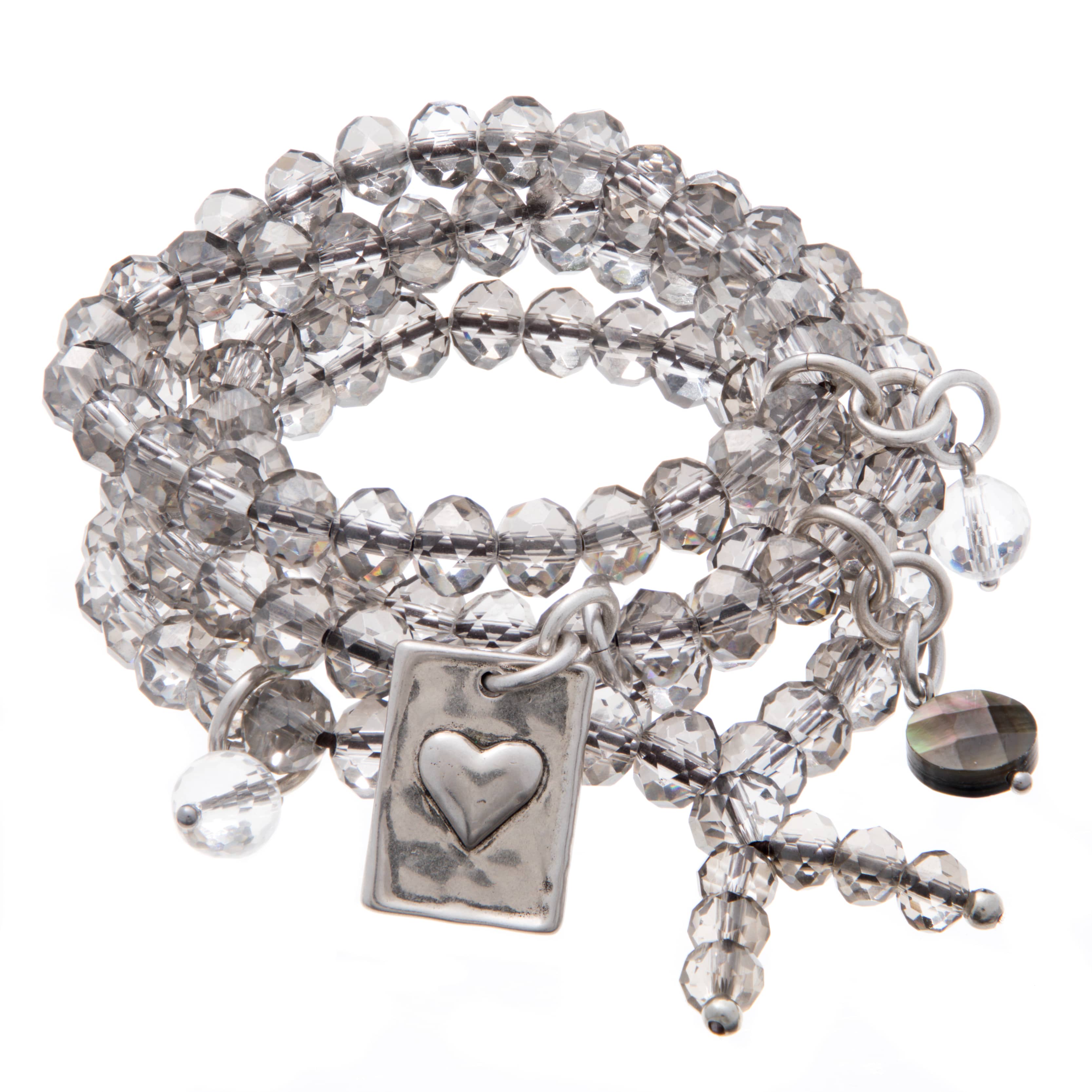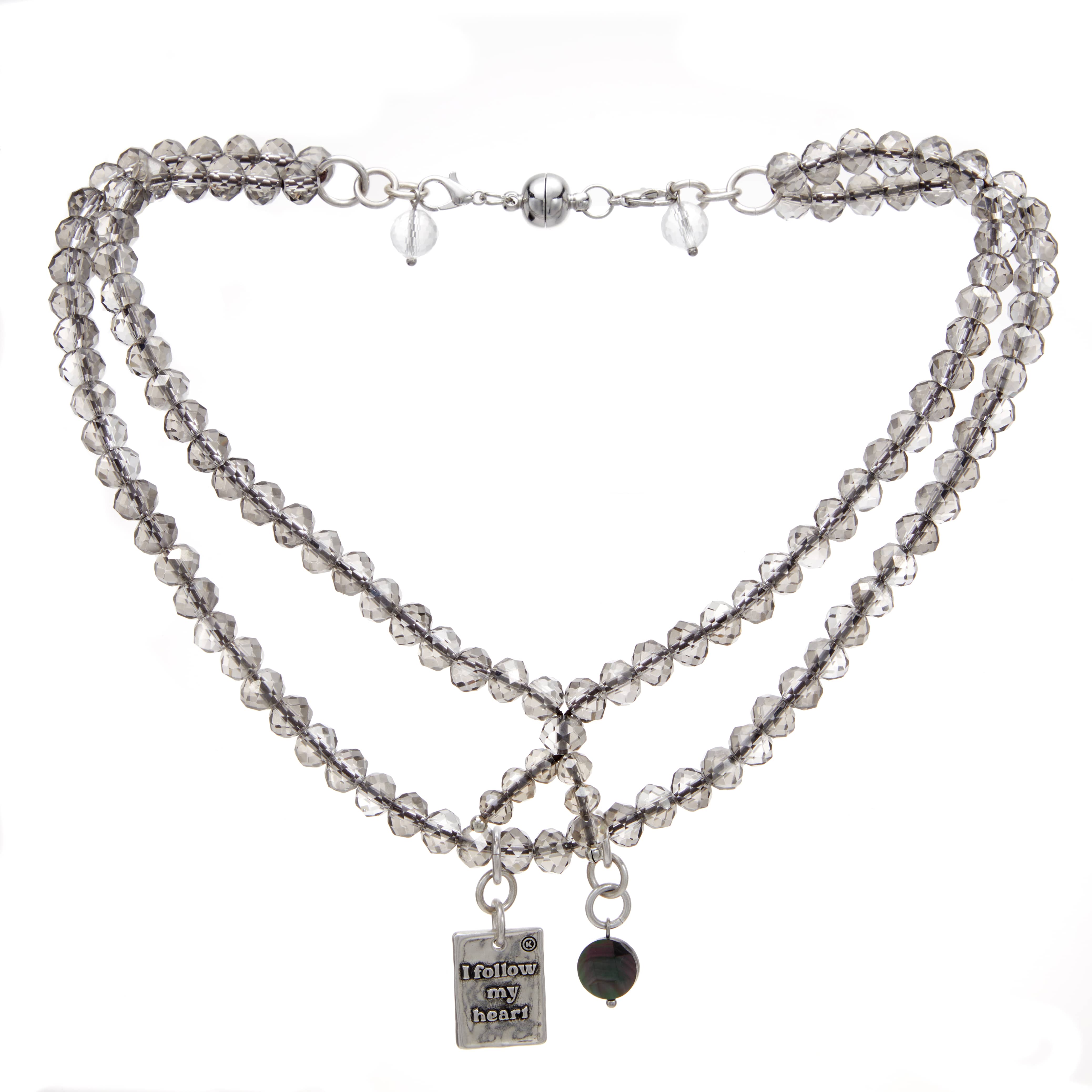 - 8mm faceted silver-grey crystal Boho Wrap with silver finish pendant