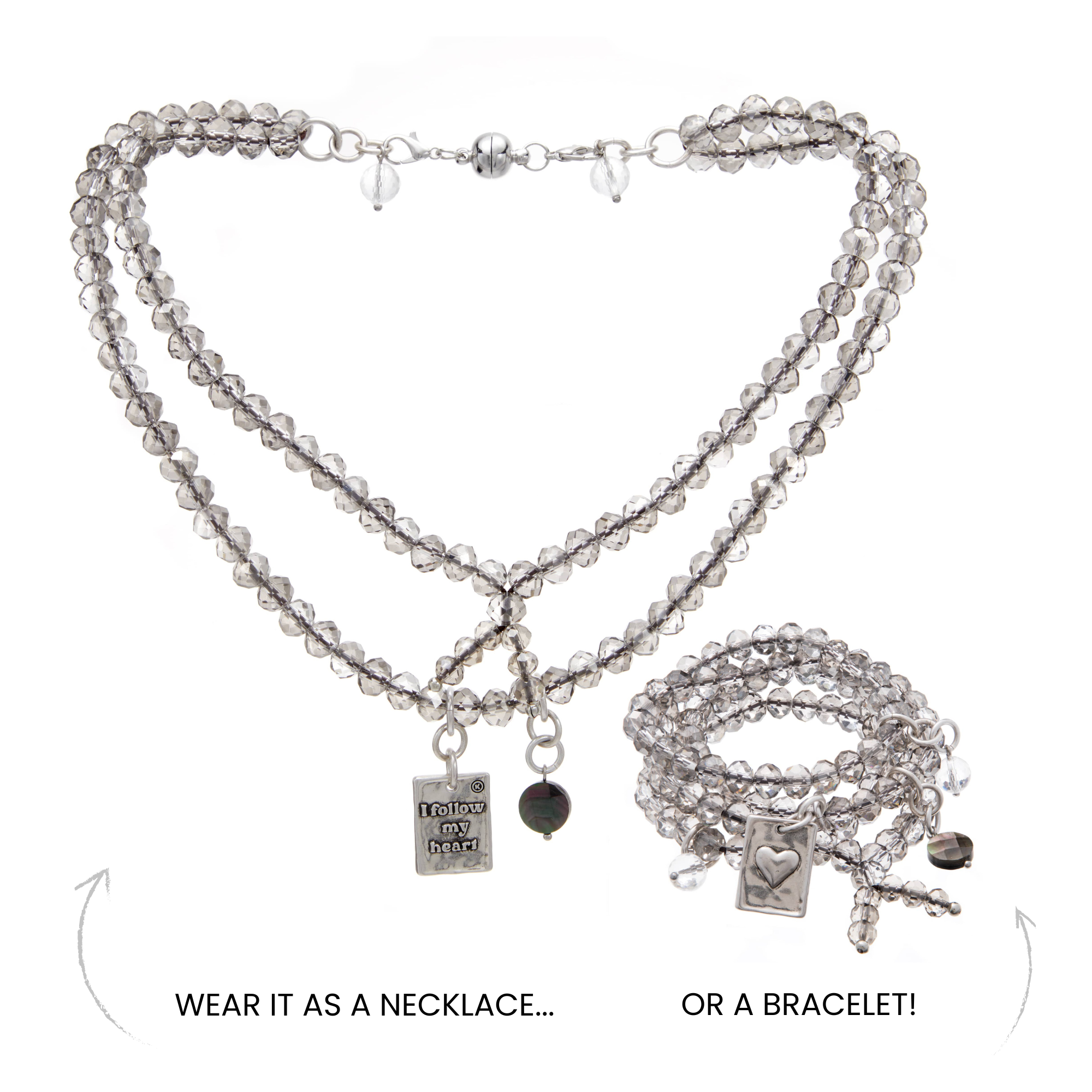 I Follow My Heart Heart Crystal Boho Wrap Bracelet/Necklace