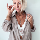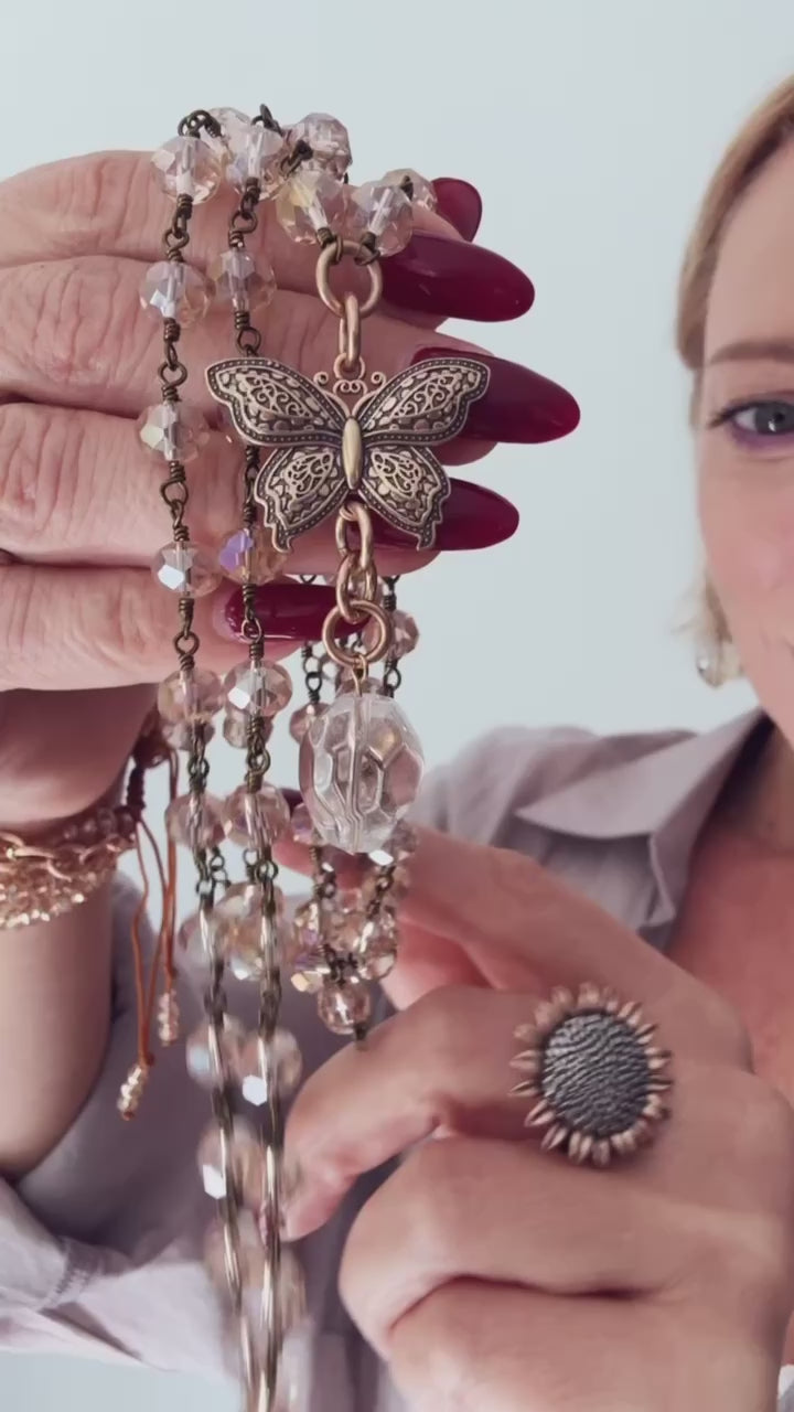 Katia loves to embrace all of the imperfections that occur when working with organic materials. Due to the crystals and crystal beads being an organic material, shape, clarity, and color vary and may have pits, cracks, and other marks that Mother Nature provided to add interest and beauty.