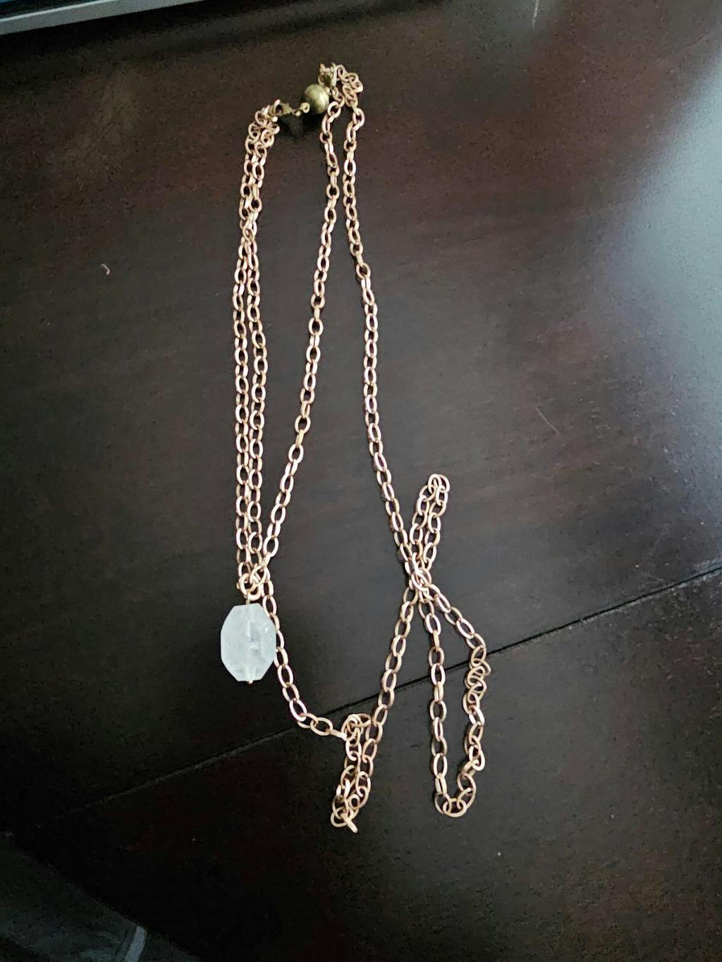 Original brass-plated stainless steel layering chain necklace with crystal quartz stone