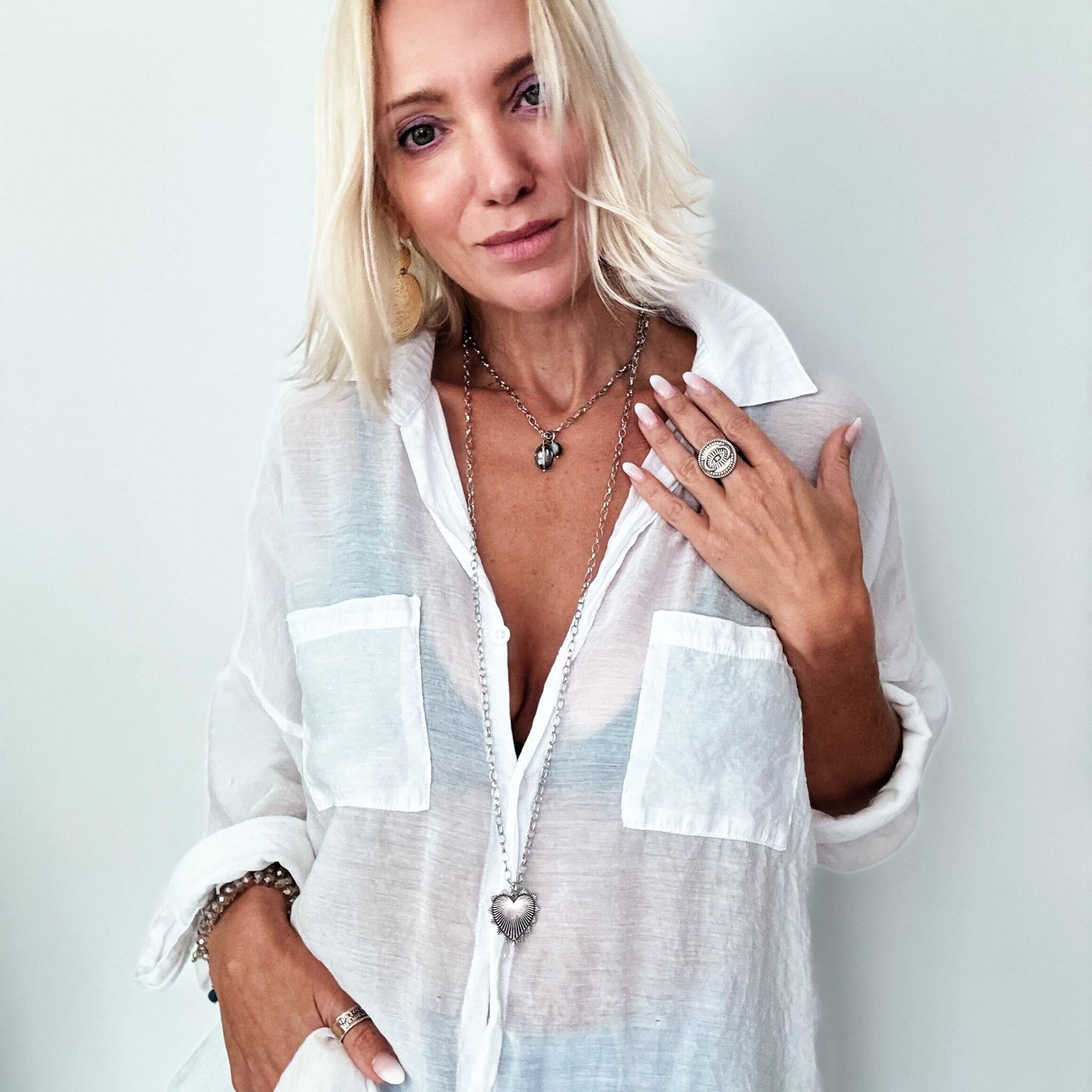 Original Lite: 48" **MODELS NECK MEASURES 15" IN CIRCUMFERENCE. PLEASE NOTE THAT NECKLACES MAY LAY DIFFERENTLY BASED ON YOUR MEASUREMENTS**