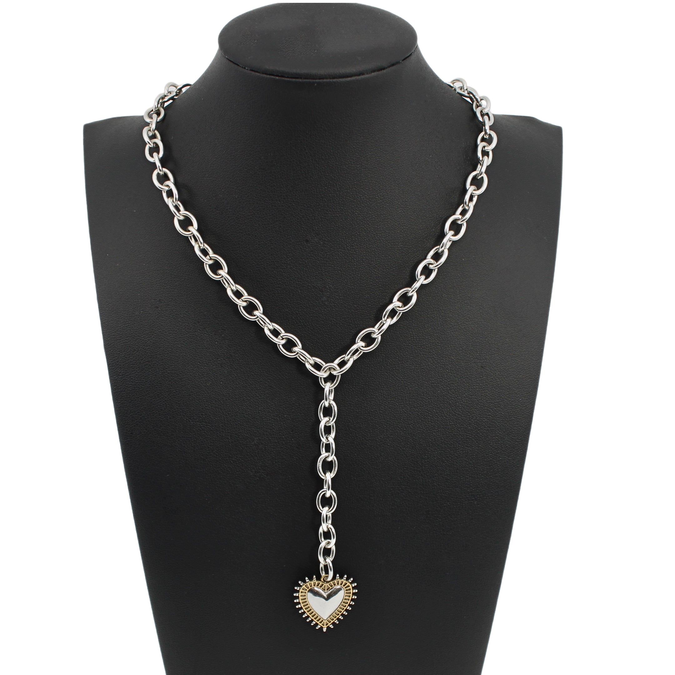 - 22" Adjustable choker with 3" drop; silver finish chain only.