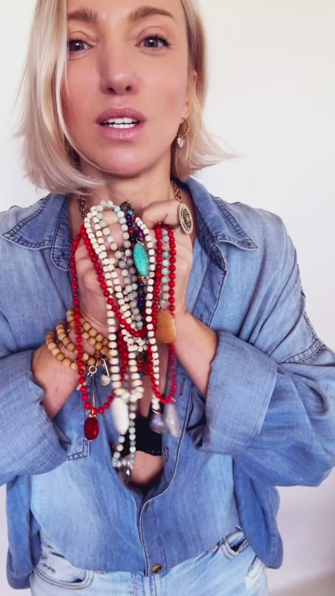 Katia loves to embrace all of the imperfections that occur when working with organic materials. Due to the crystals and crystal beads being an organic material, shape, clarity, and color vary and may have pits, cracks, and other marks that Mother Nature provided to add interest and beauty.