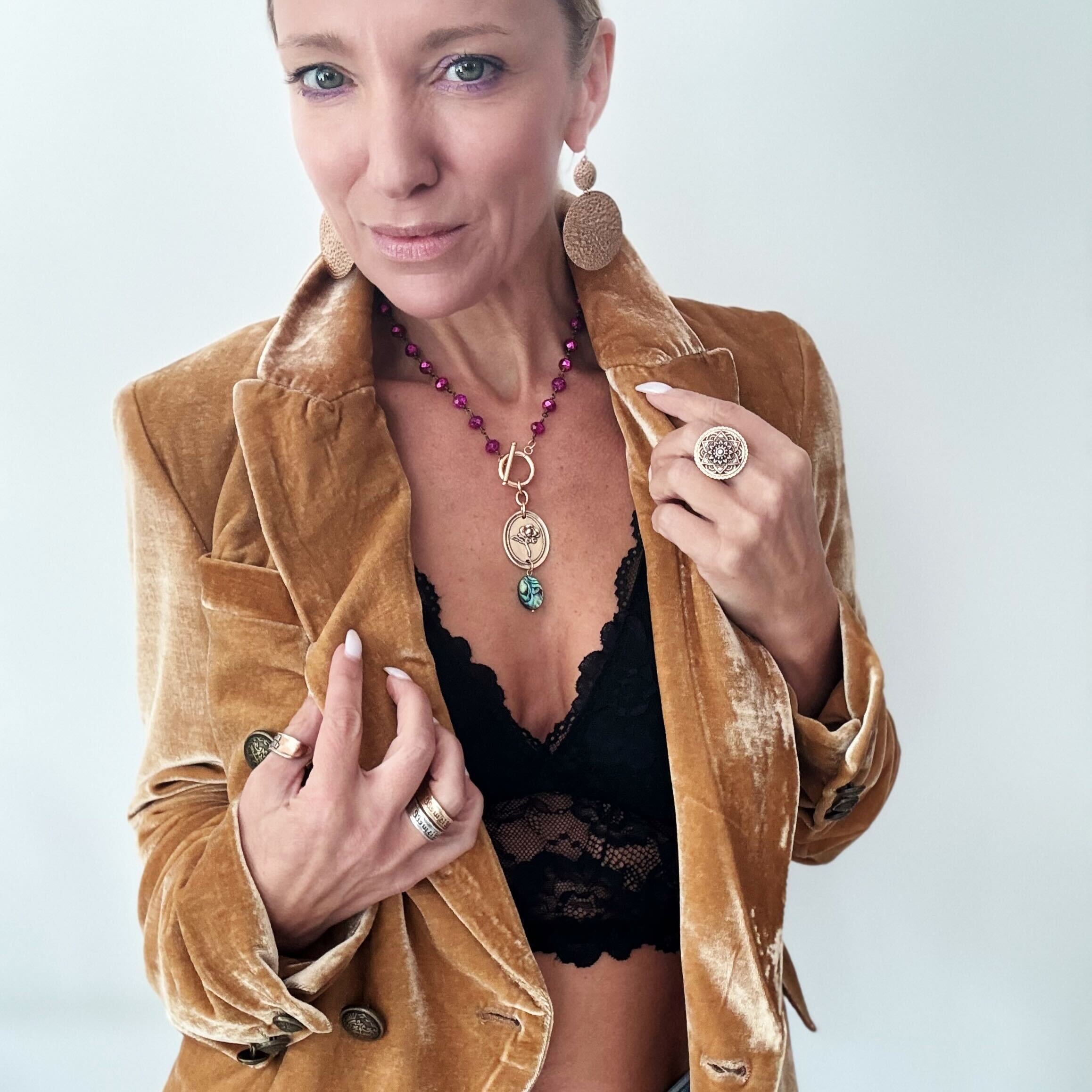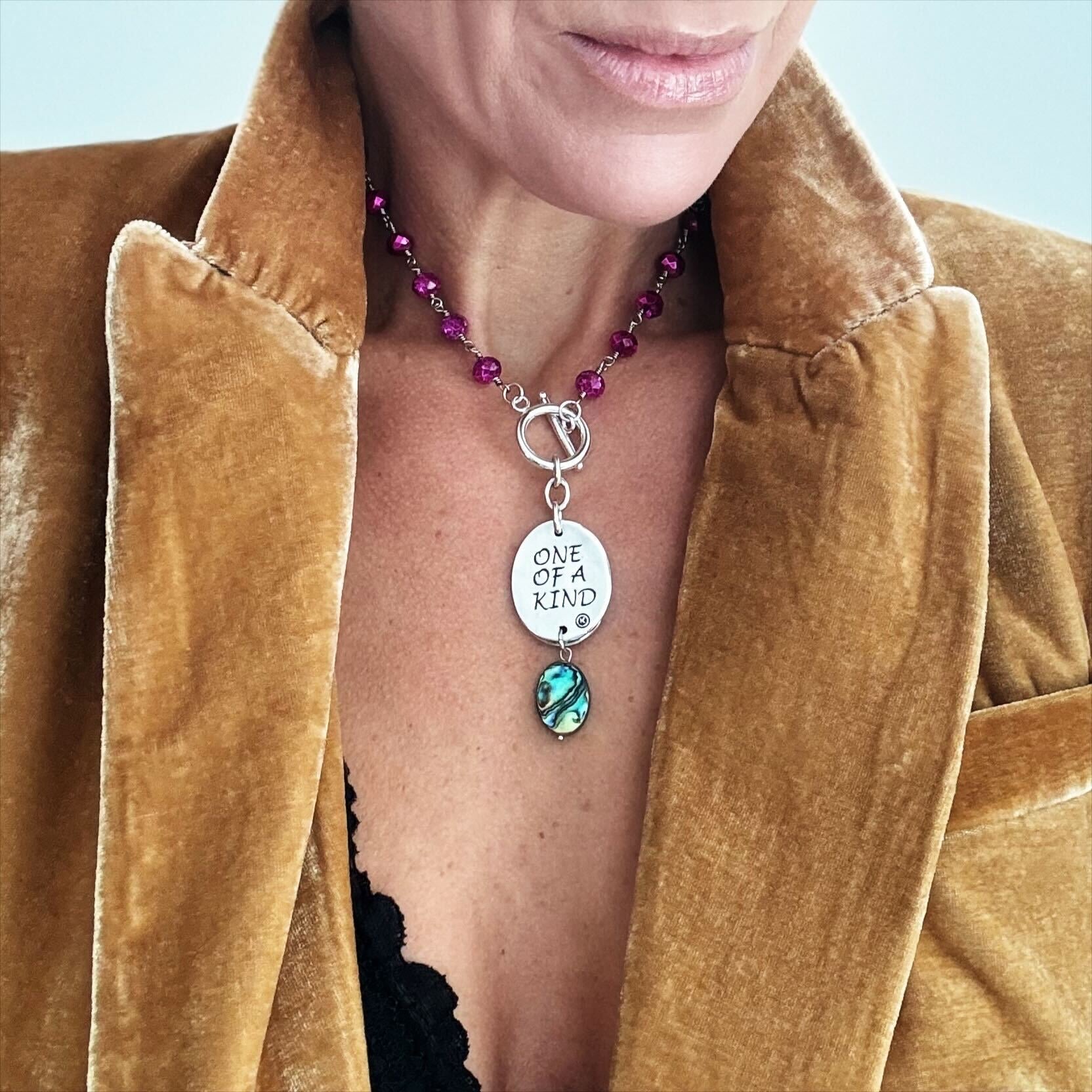 Katia loves to embrace all of the imperfections that occur when working with organic materials. Due to the crystals and crystal beads being an organic material, shape, clarity, and color vary and may have pits, cracks, and other marks that Mother Nature provided to add interest and beauty.