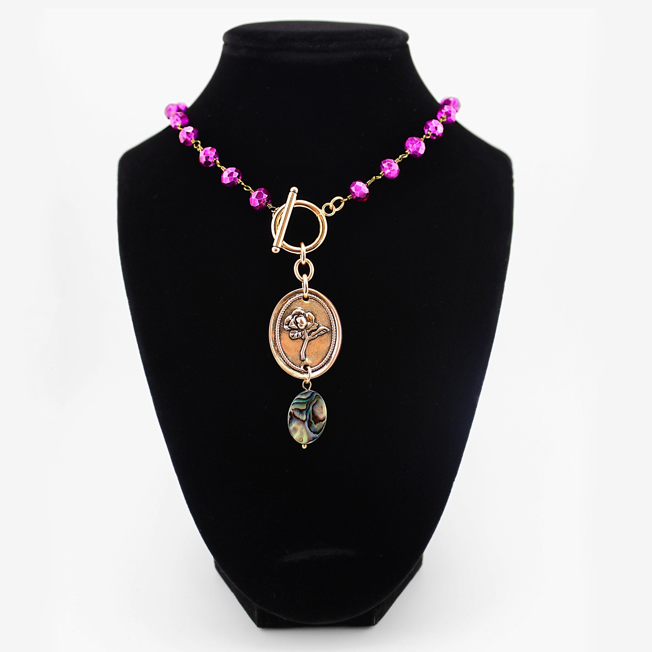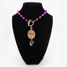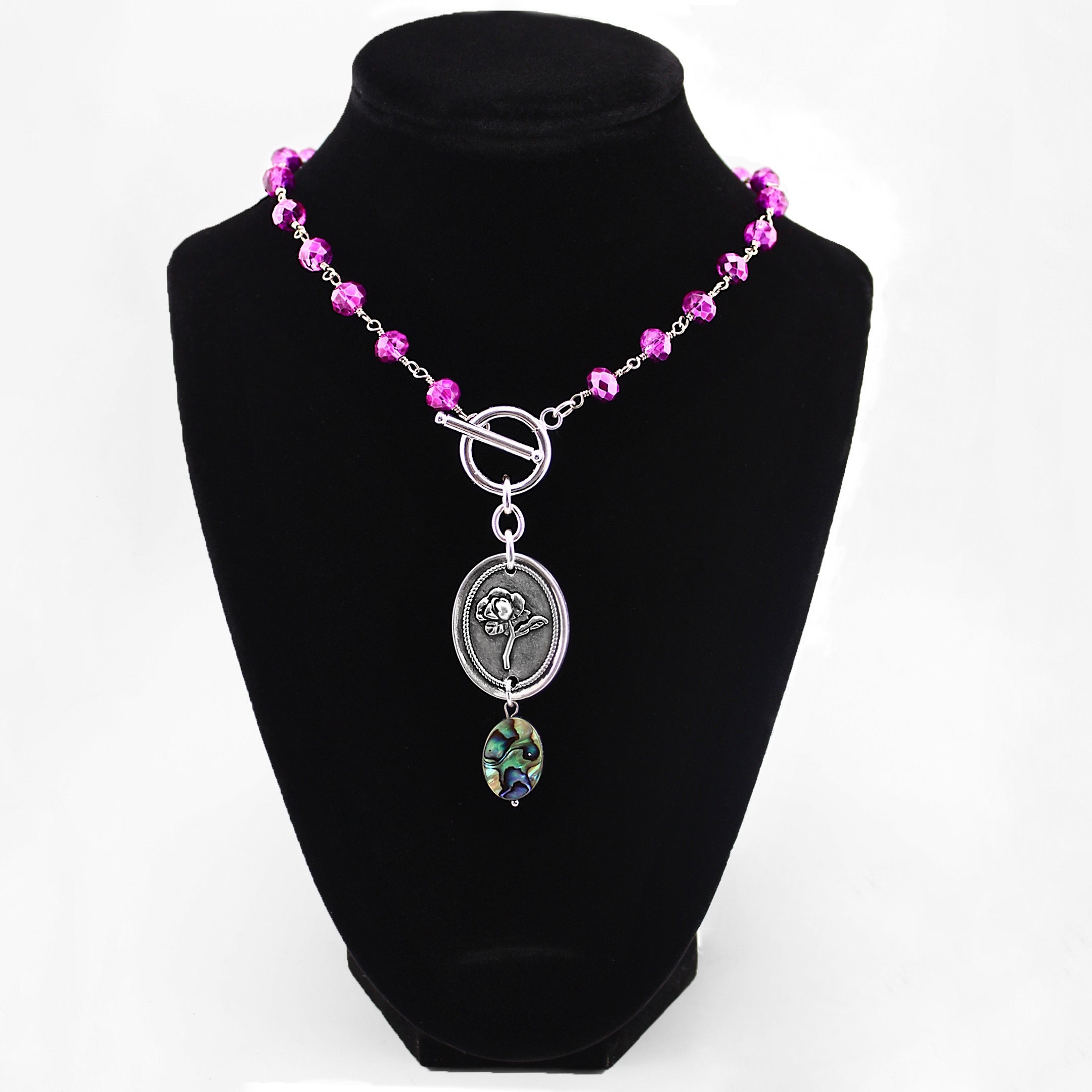 - 8mm fuchsia faceted crystal bead rosary choker necklace
