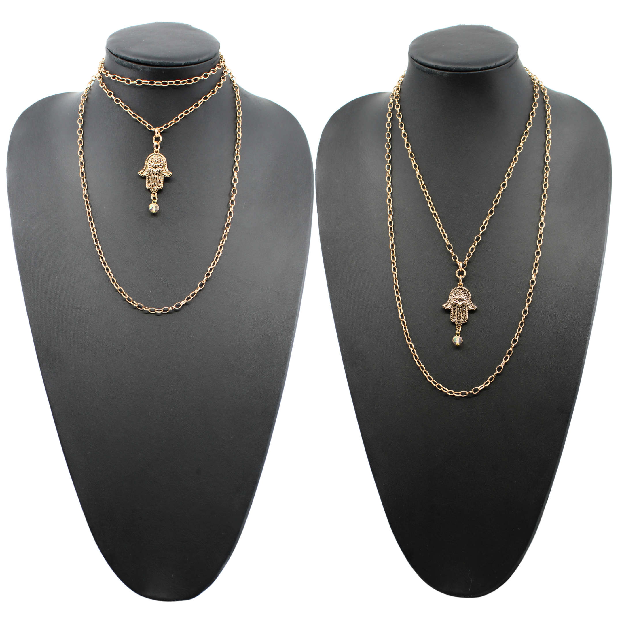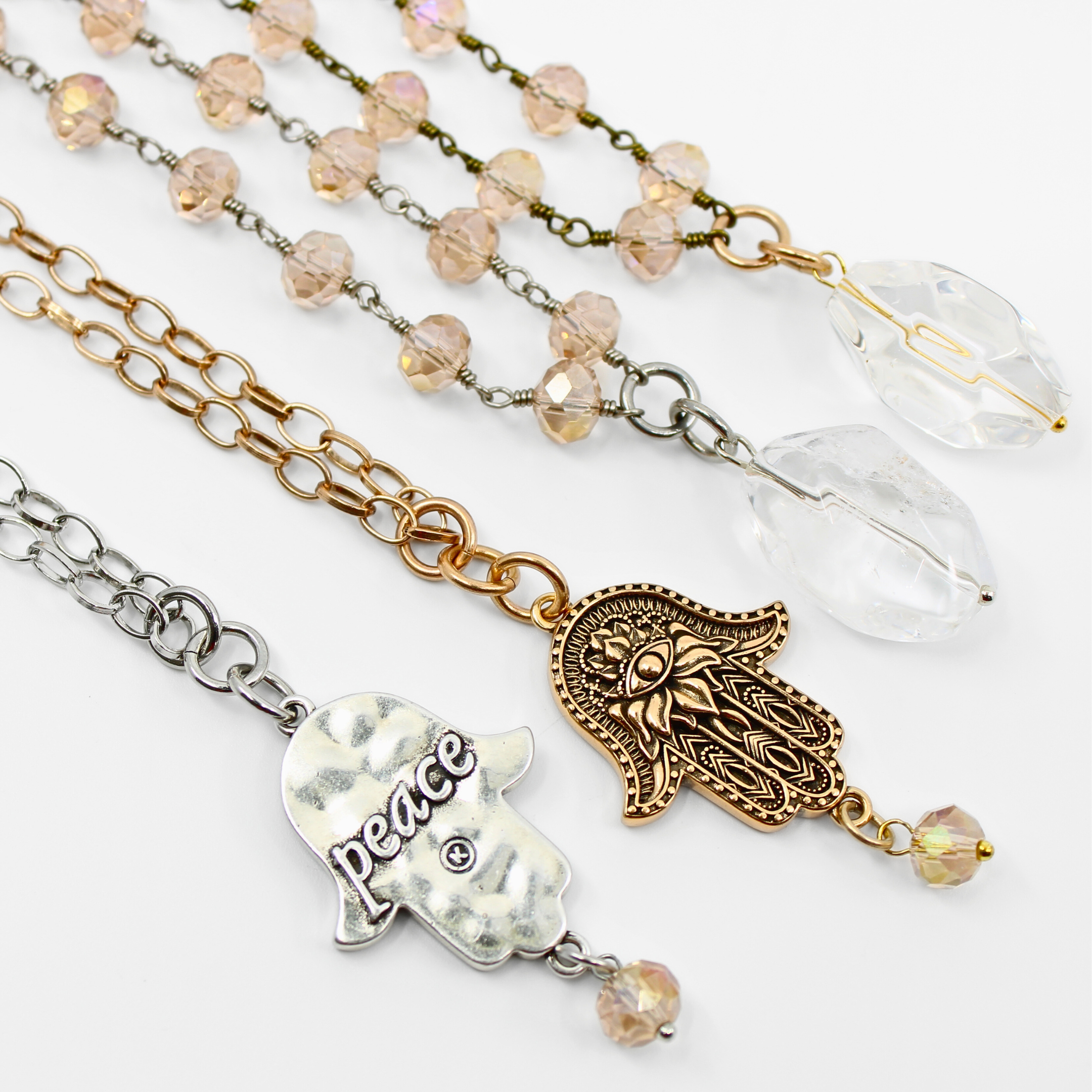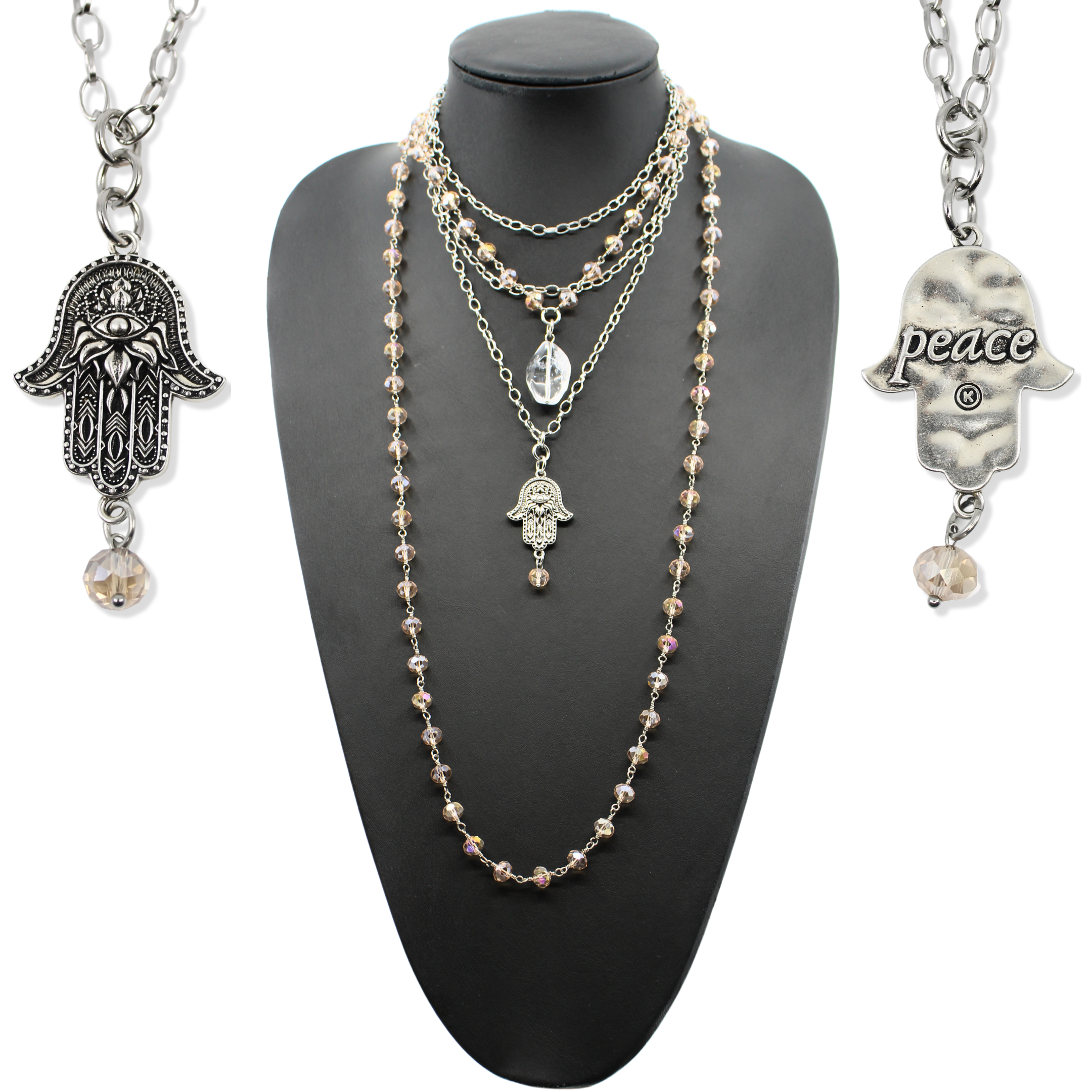 (1x) 48” Original 6mm stainless steel chain, 3D hand pendant and crystal accent