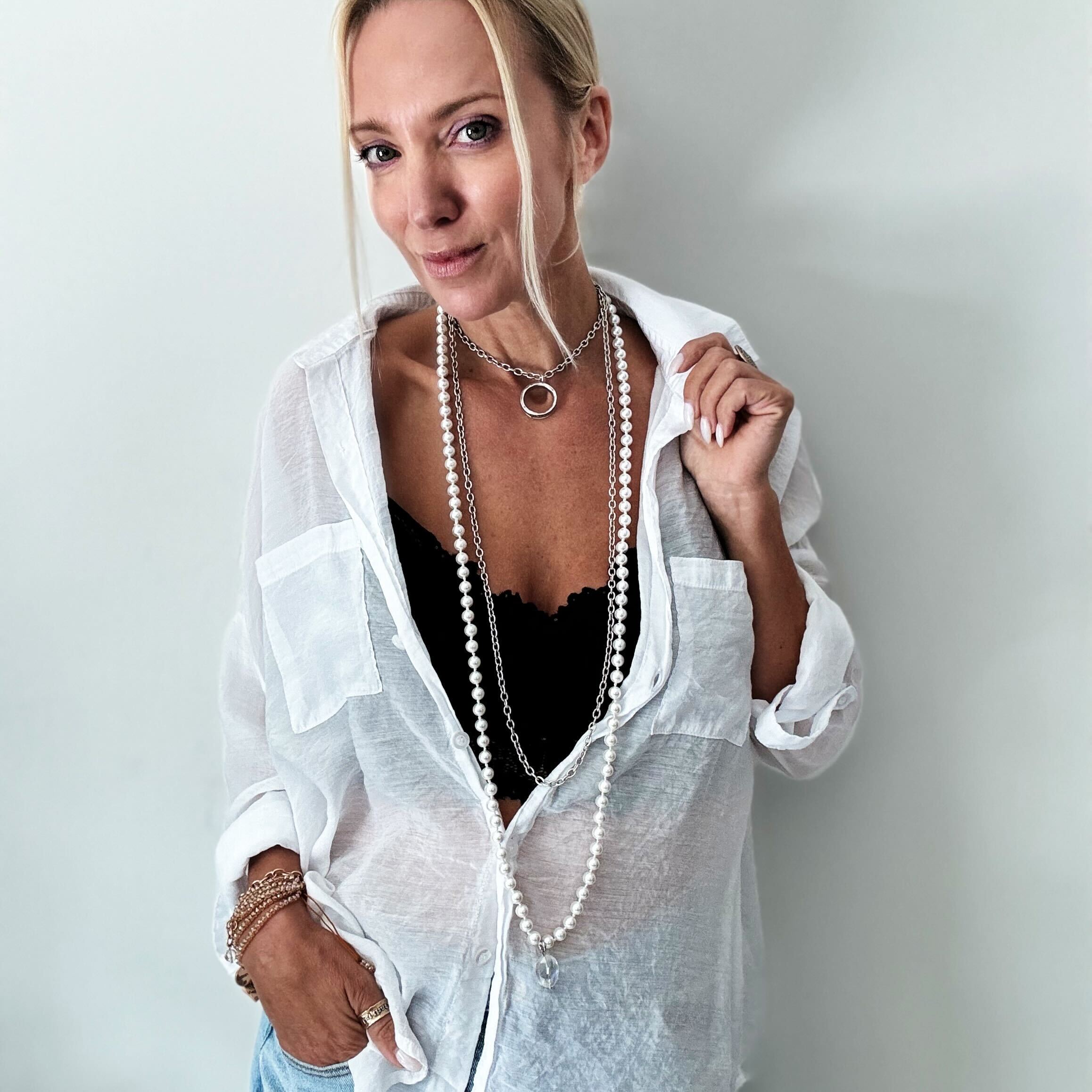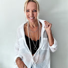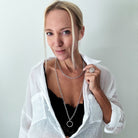 Regular Fusion Full Length: 36-48" **MODELS NECK MEASURES 15" IN CIRCUMFERENCE. PLEASE NOTE THAT NECKLACES MAY LAY DIFFERENTLY BASED ON YOUR MEASUREMENTS**