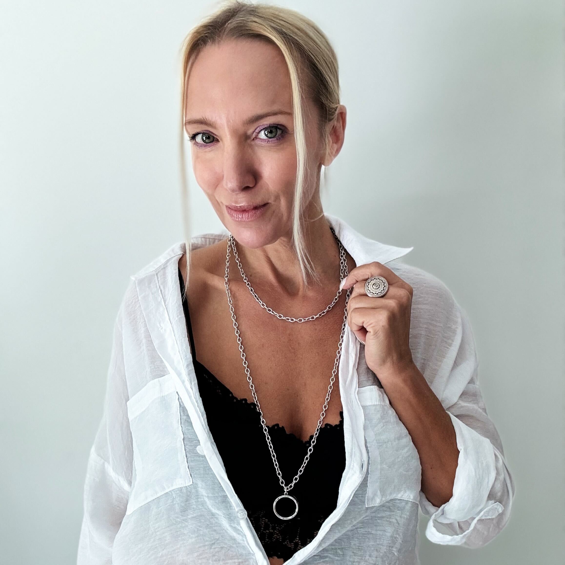 (1) Essential: 48” 7mm layering chain with ring pendant, message inscribed