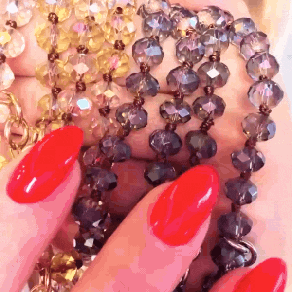 Katia loves to embrace all of the imperfections that occur when working with organic materials. Due to the crystals and crystal beads being an organic material, shape, clarity, and color vary and may have pits, cracks, and other marks that Mother Nature provided to add interest and beauty.